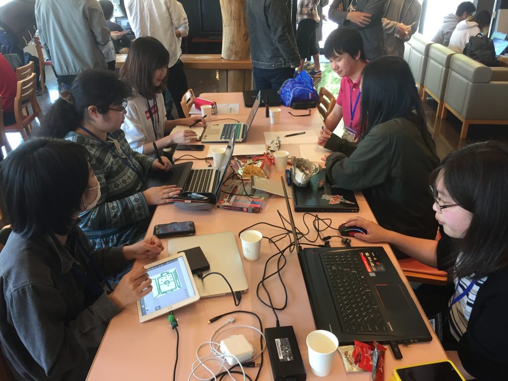 初のゲームジャムは、2019年5月11日(土)と12日(日)の2日間、京都市北区にある総合地球環境学研究所(略称 地球研)にて実施しました。BitSummit 7 Spiritsのテーマである「多様性」からヒントを得て、ゲームジャムのお題を「混然一体:様々なものが溶け合って一丸となること」と設定し、京都と大阪の大学や専門学校6校から、ゲーム制作を学ぶ総勢52名の学生と、各校の先生方が参加しました。