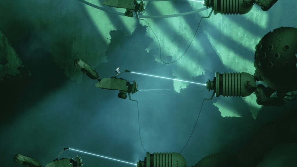 A scientist uses a unique teleportation instrument to escape an ancient biomechanical world filled with imaginative technology, deadly traps, and hidden secrets.