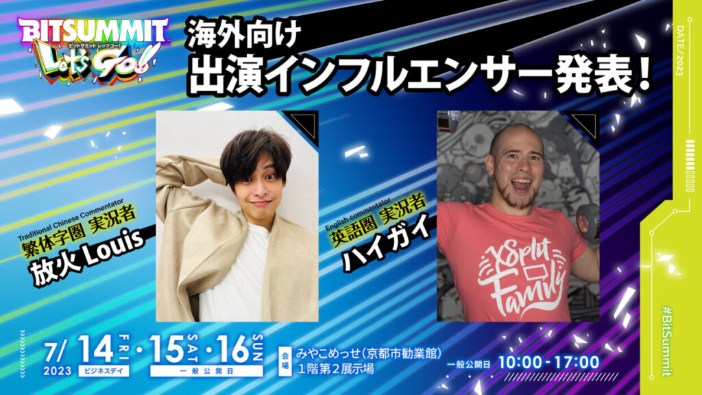 This year, BitSummit is excited to announce that they will host a live webcast for the traditional Chinese-speaking world for the first time! Fans can look forward to seeing “Arson Louis,” a popular game player from Taiwan with over 1 million subscribers on his YouTube channel, on-site. “HighGai,” a well-known face at BitSummit in the English-speaking world, will also be participating. The event will feature live coverage of some of the games showcased by BitSummit’s official international distribution platforms!