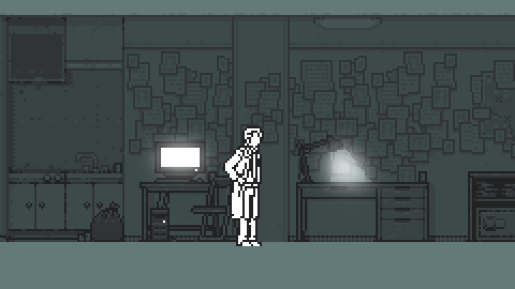 レトロでハードボイルドな雰囲気のドット絵が特徴的な横スクロールアドベンチャーゲーム。