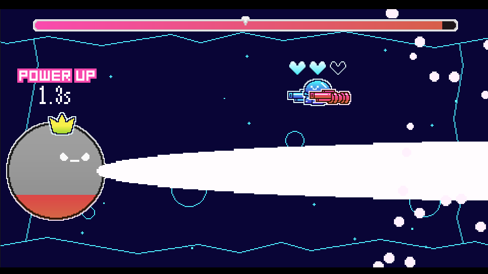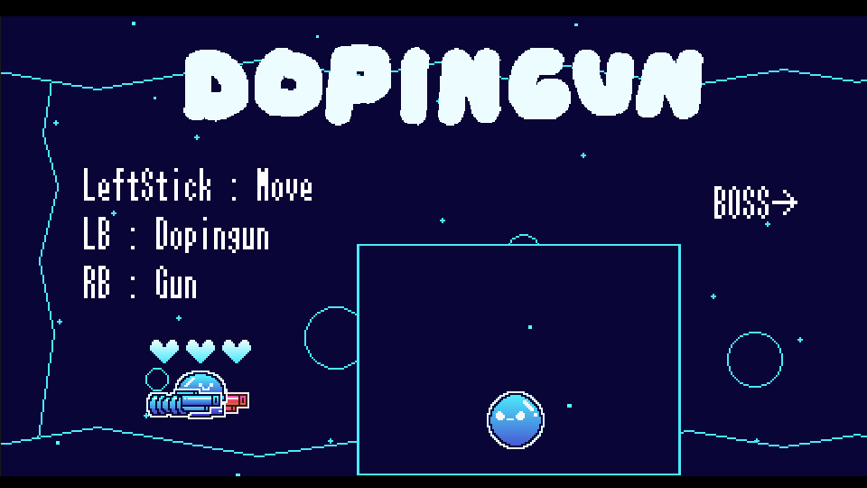This is a 2D shooting game in which you use the Dopingun to enhance yourself messily and shoot a lot of bullets. Sometimes you can create an opening by shooting at the enemy, or use the Dopingun as a starting point to expand your strategy.