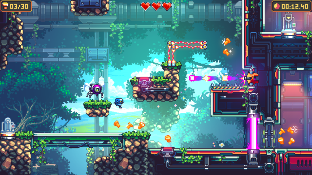 Become a tiny ZX8000 robot and begin your journey through a beautiful, pixel-art world inspired by games iconic to the platformer genre. Follow a surprising story, upgrade your skills, beat challenging levels, and compete with other players for the fastest speedrun!
