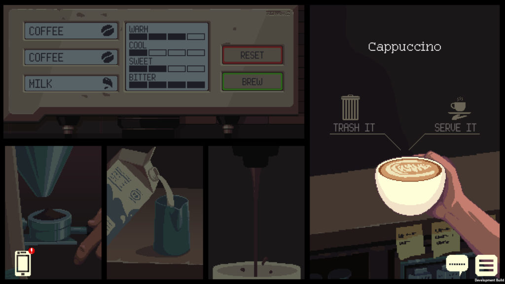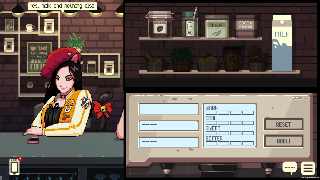 - Branching storylines, where the branches are determined not by the dialogue options you choose, but from how you serve your café customers