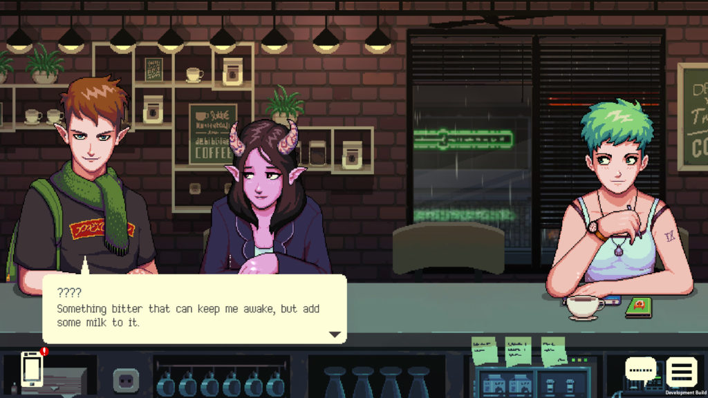 Coffee Talk is a coffee brewing and heart-to-heart talking simulator about listening to fantasy-inspired modern peoples’ problems, and helping them by serving up a warm drink or two.