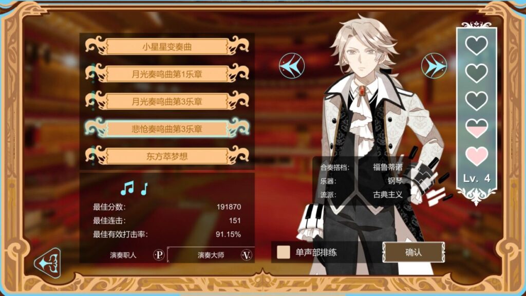 Concerto on White is a musician simulation game featuring classical music. Unlike any typical rhythm games, players are required to actually play the main melody.