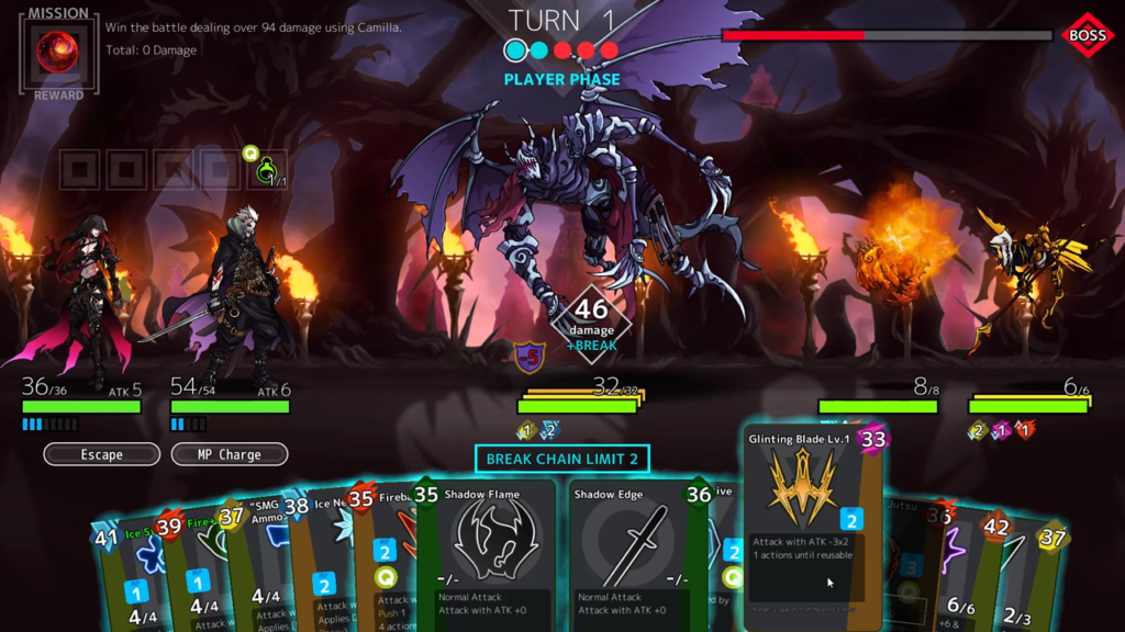 Break Chain attacks are the most unique part of this game’s battle system. Breaking an enemy's HP raises your character's attack power and allows you to attack again.