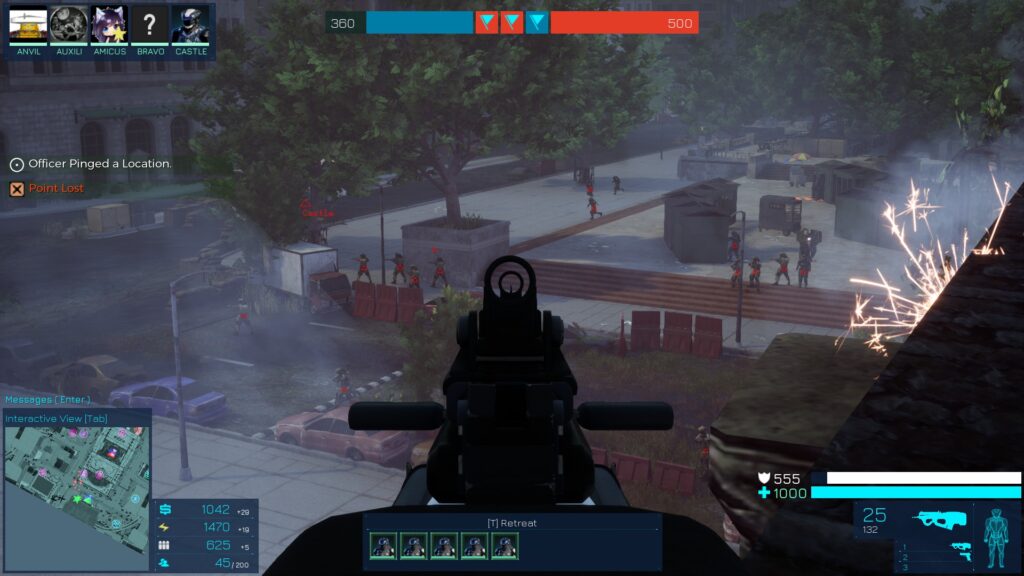 As a Commander, you are also an Officer. However, you have the extra capability to switch to top down RTS interface to build bases and command units. An aggressive Commander can also join the battle in the frontline but they are normally expected to stay in relative safety and manage base development. Commander needs to be nominated by the team.