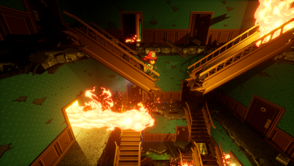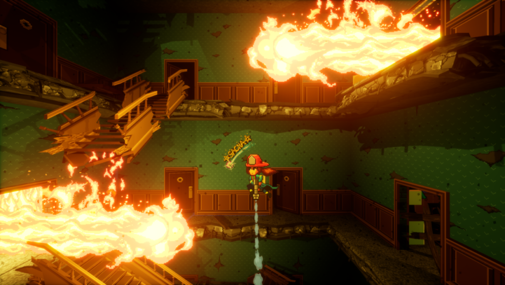 Respond to new fires in procedurally generated levels across forests, lavish hotels, trains and apartment blocks.
