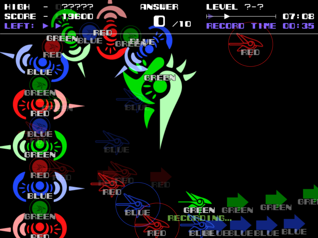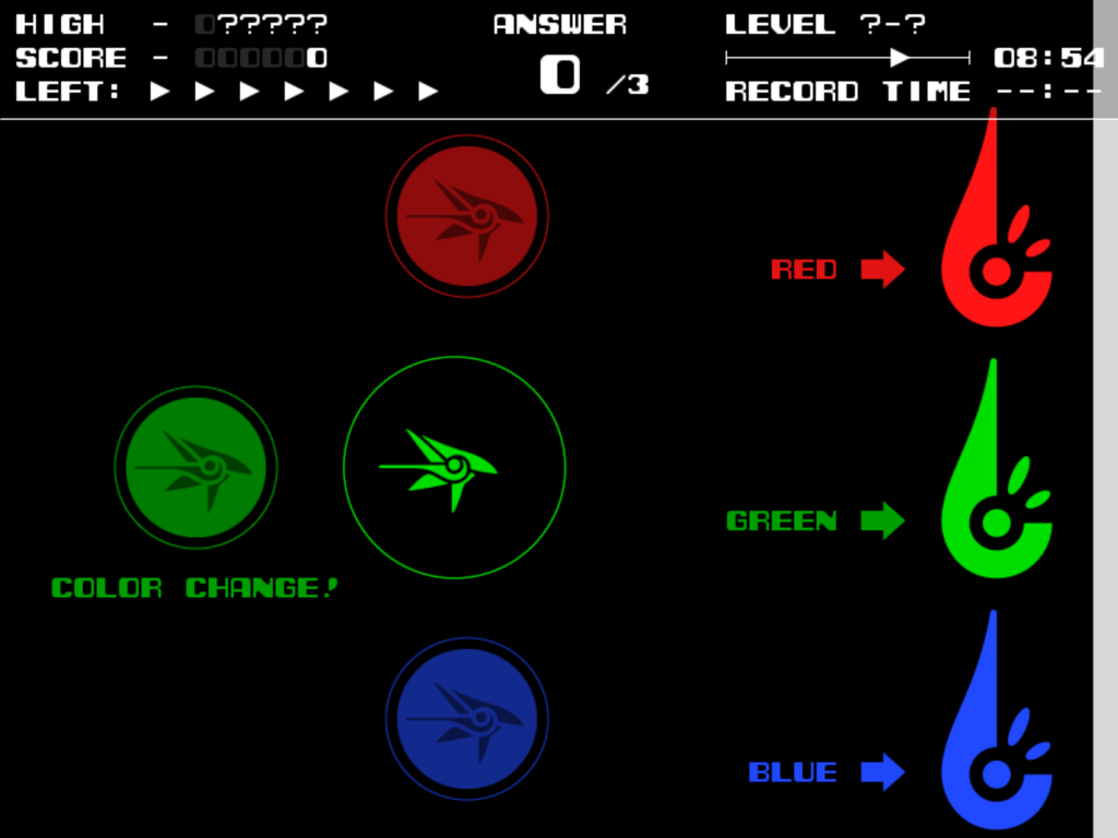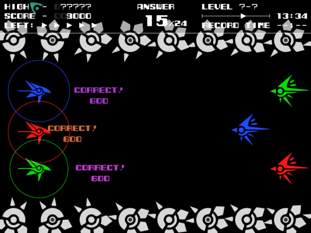 各ステージに複数存在する3色のターゲットを全て、同色の攻撃で破壊するとステージクリアです(全99ステージ+α)。