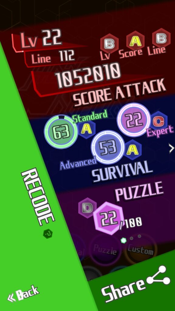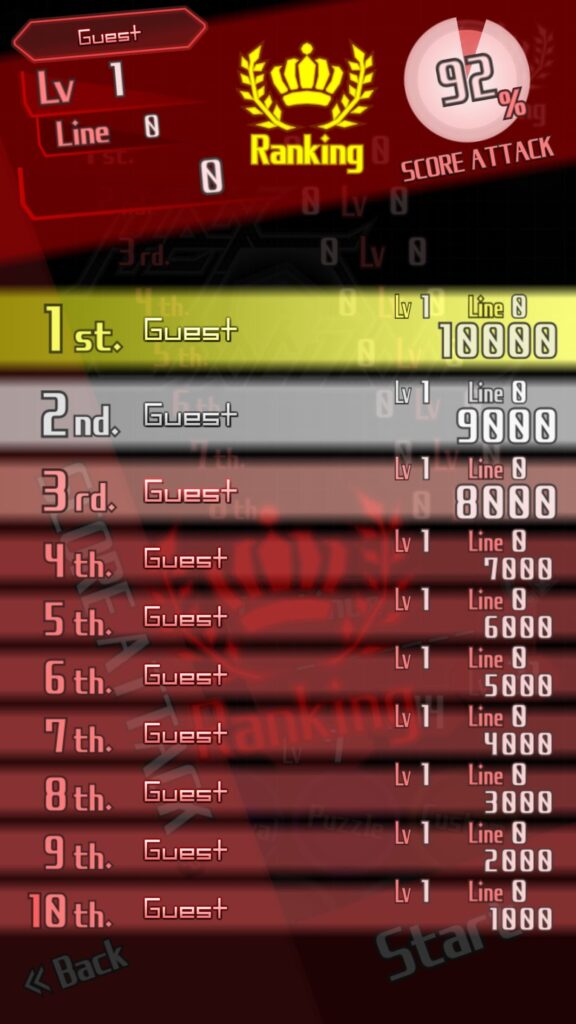 ScoreAttack: Every time you solve a puzzle, the difficulty level goes up and more complicated pieces appear.