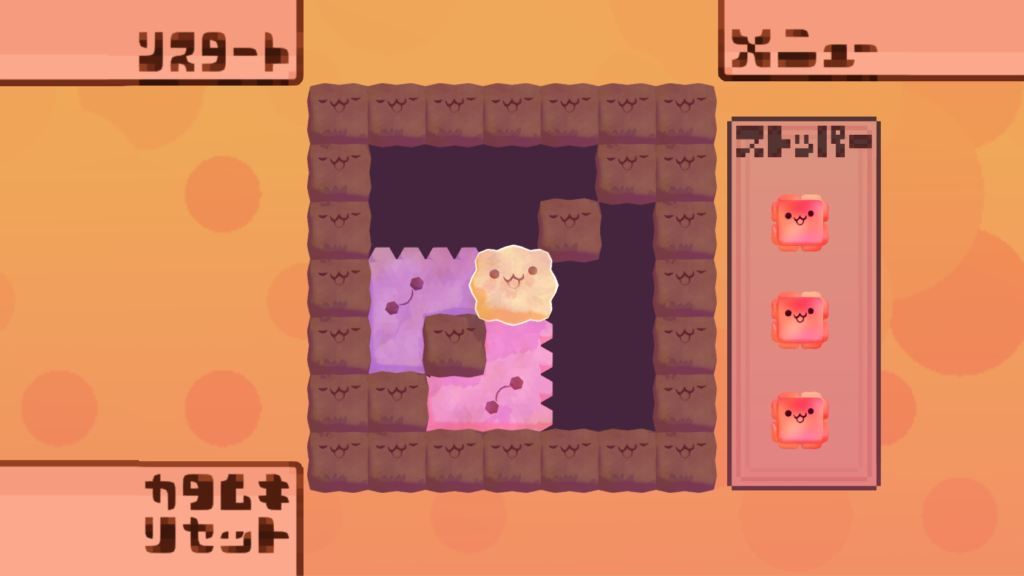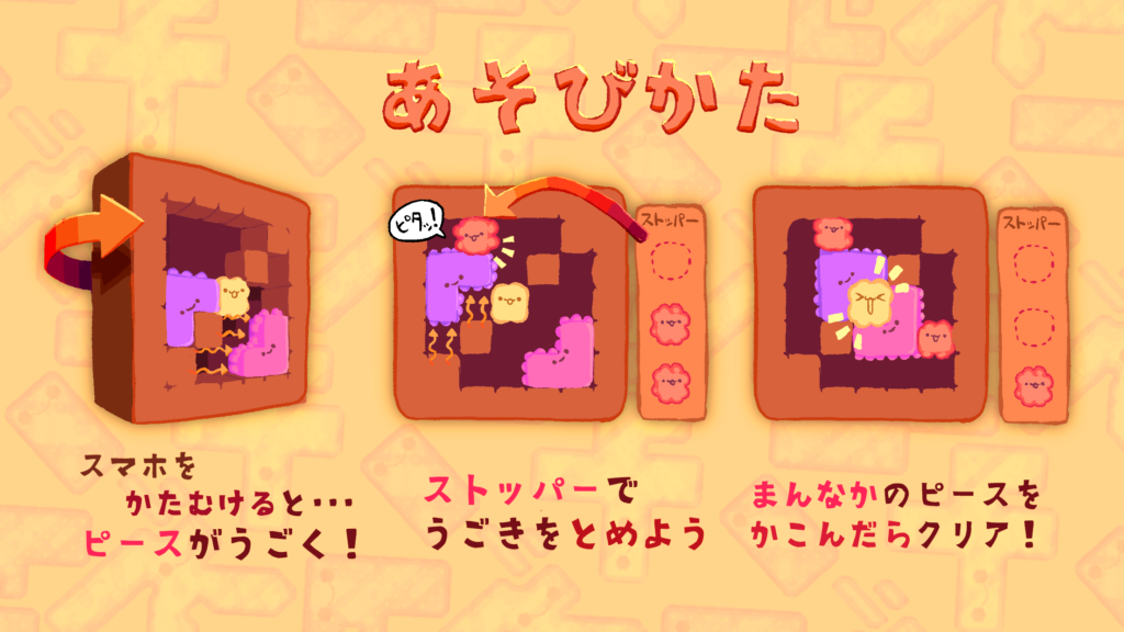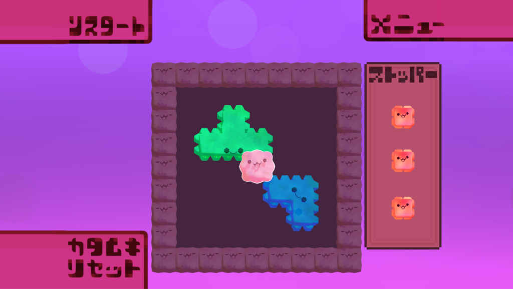 "KataPuzz" is a puzzle game by tilting or moving your phone. The two blocks on the board called "カタピー" move in the direction tilted! If you surround all side of the center block with "カタピー", you complete a stage!! The stopper block on the right can block the movement of the "カタピー" by placed on the board!!! On all 24 stages, have three scores each, and if you complete all stages , you get a crown! Let's try our best for a full score!RELEASE DATE