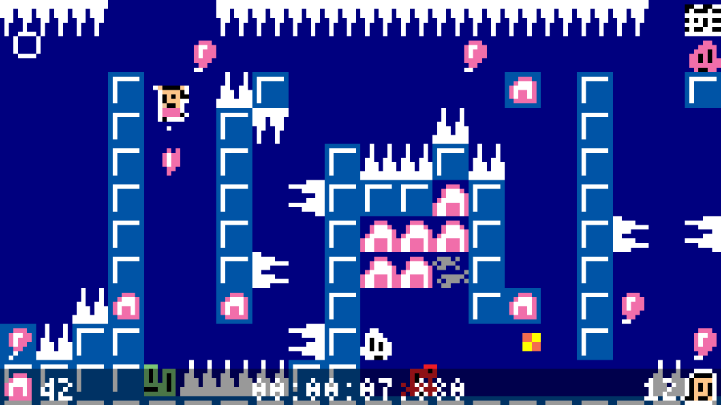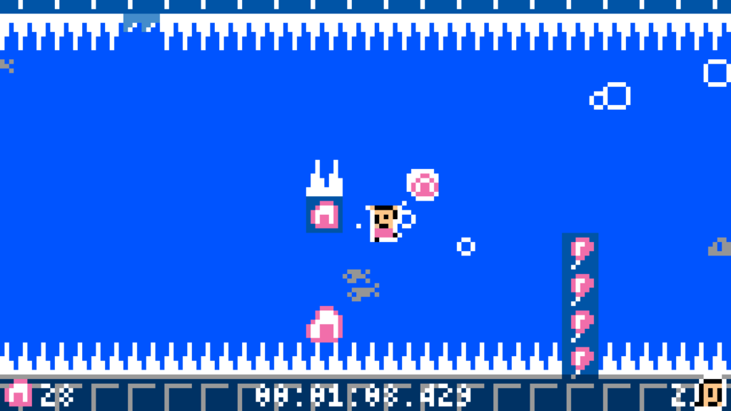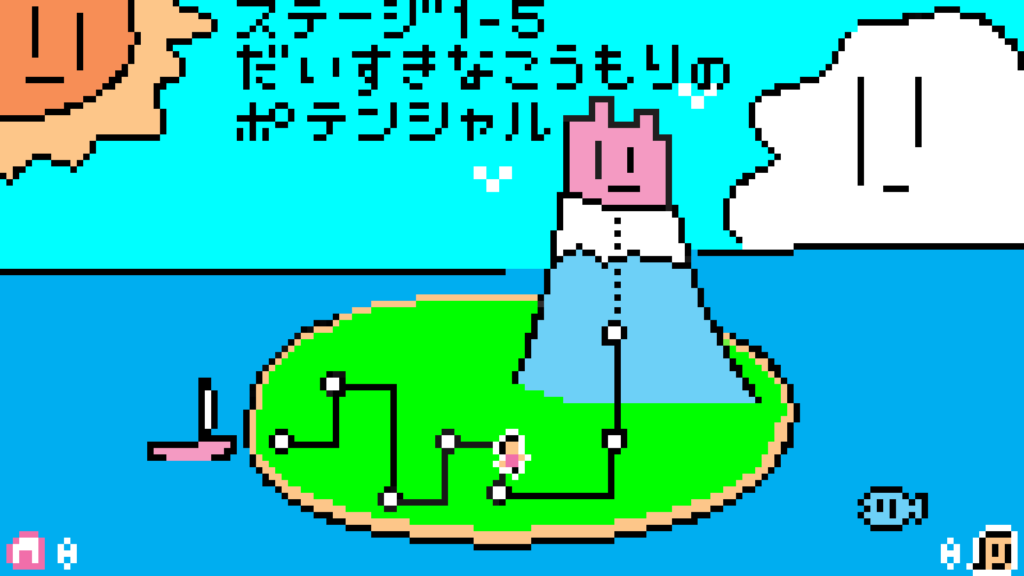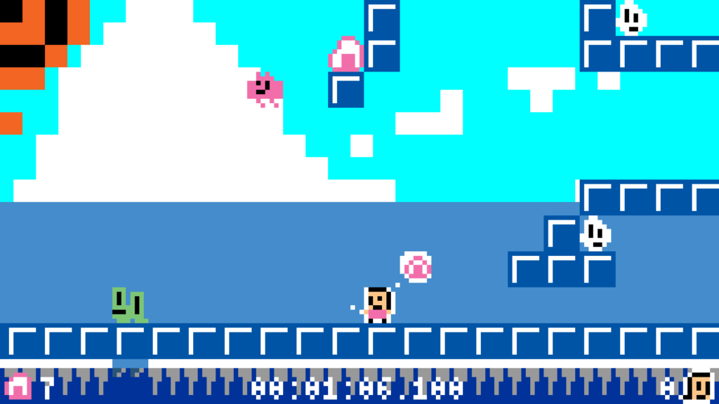 This is a platformer game where you control me, whose state changes as I eat onigiri, and try to solve the mystery of the mysterious island.