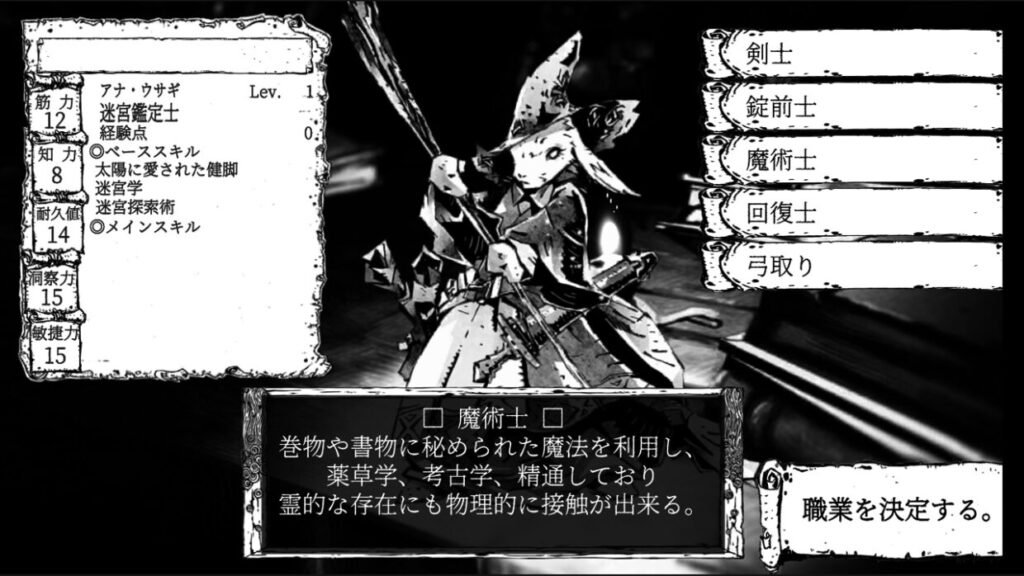 The game's design and system are based on monochrome, with strong influences from RPGs and fantasy games of the 80s and 90s, and includes many elements that will make you grin if you are a seasoned adventurer (game user).