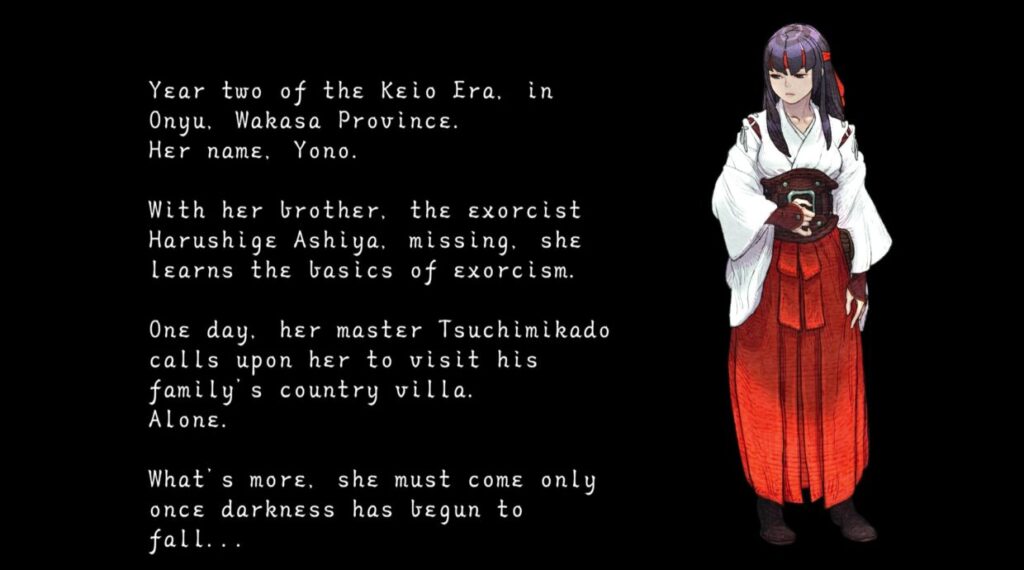 Set in the final days of the Tokugawa shogunate, the player wanders around a vast mansion with the young Onmyoji “Yono,” listening for noises coming from the next room, finding traces left on the walls and floors, avoiding ghosts and vengeful spirits, and deftly navigating through danger.