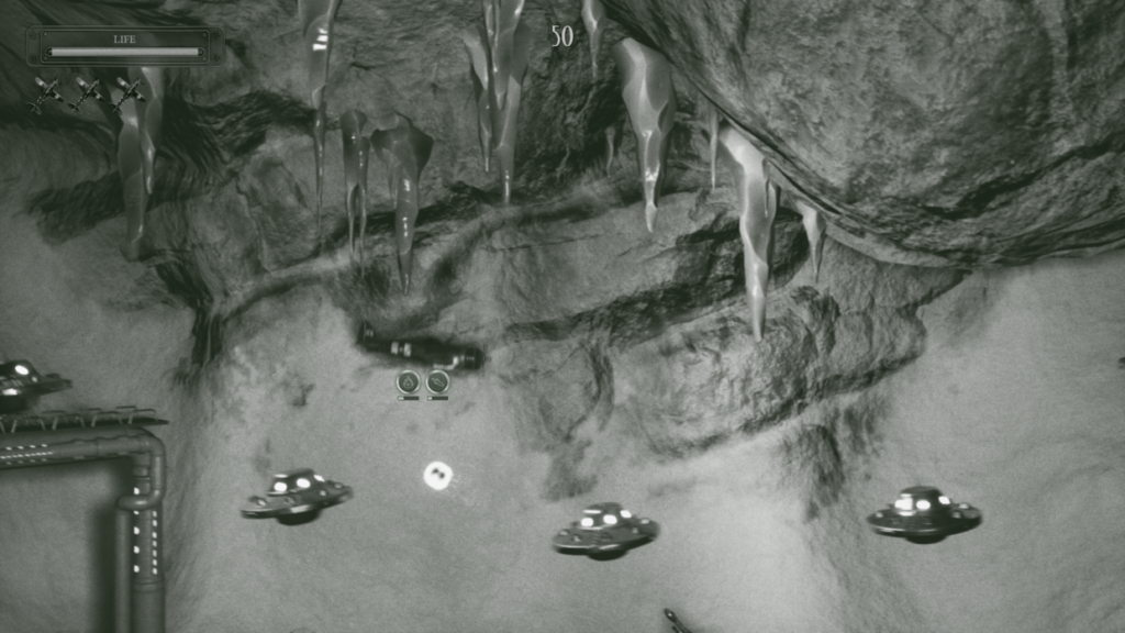 Glorious black-and-white aesthetics, live-action FMV sequences and dubbed voices will tell the story of the battle between the Squadron 51 and Director Zarog’s alien supremacy. - 11 levels