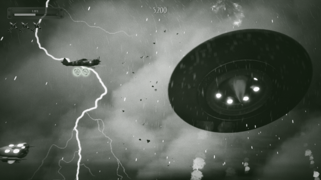 Join the rebel cause as LIEUTENANT KAYA, facing flying saucers, alien fighters and monsters in the skies of the 1950’s! Remember: the future of the Earth is in your hands!