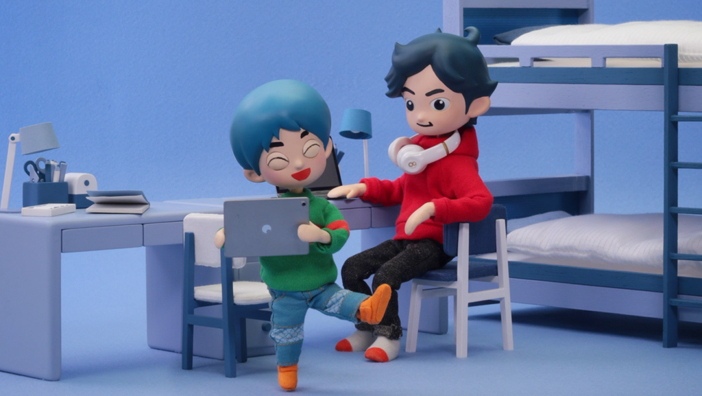 "Takeshi and Hiroshi" combines the two worlds of puppet animation and Role Playing Game. It tells the story of two brothers and their daily life. The 14-year-old Takeshi, a game designer to-be, is creating a game for his weak little brother Hiroshi who always wants to play the next chapter of the game as soon as possible. As the game is still in the making, Takeshi has to improvise and secretly plays some of the monster roles himself. It is Takeshi's goal to make Hiroshi really enjoy his game, let him meet big challenges, but preferably to prevent him from losing. He has to choose which monsters shall appear when and struggles more and more as the challenge for him as a game creator becomes increasingly difficult.