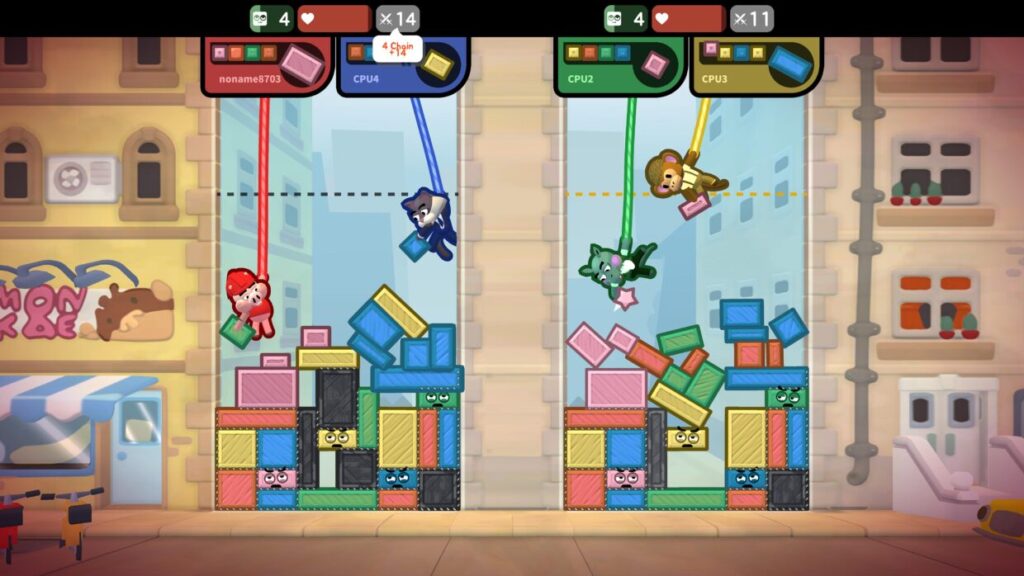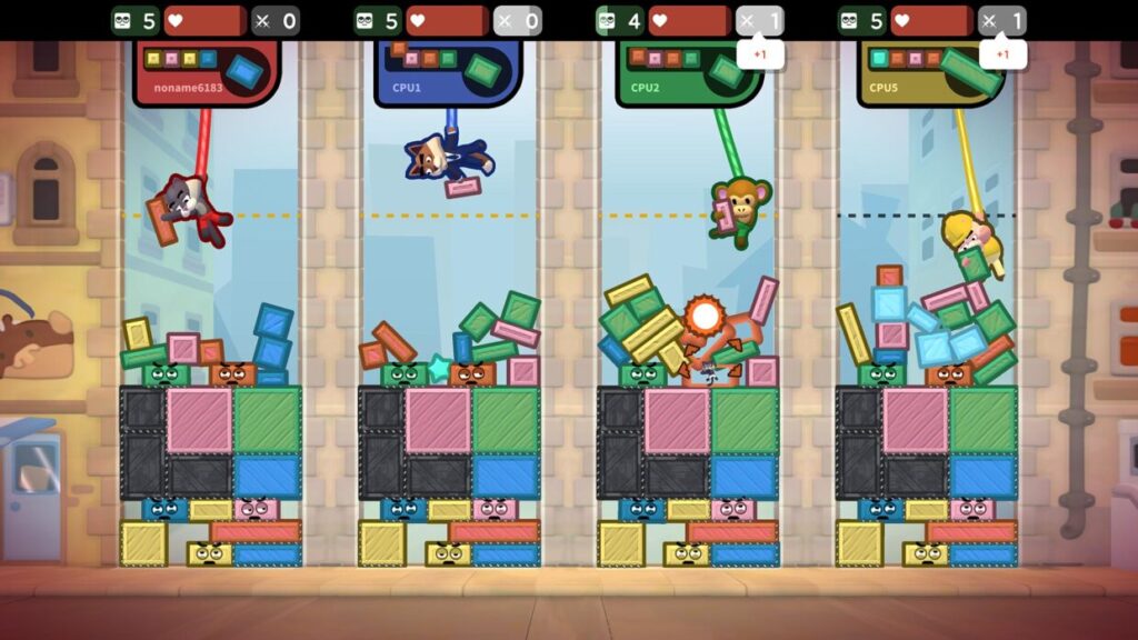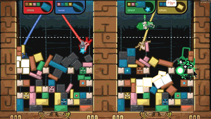 Welcome to the jumble!  TopplePOP is a physics puzzle party with bendy animal acrobats on bungee cords for 1-4 players in solo, co-op & PvP.  Master precision eSport skills to dominate team battles & racing leaderboards!  -Or don't!  With all-ages assist-modes, bouncy couch co-op & chill zen puzzles.