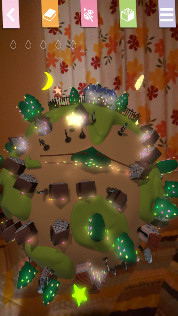 Augmented Reality is a technology to fuse the real and digital worlds. The mini planet that you made seems to be actually floating in front of you by using AR.