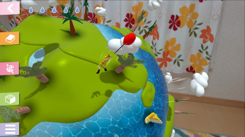 『TOYFORMING』 is a planet simulation game to terraform a mini planet by drawing pictures. AI determines what was drawn after you drew a picture on the app. The picture is transformed into 3D, and breathed life on a mini planet that is 60cm in diameter. Clouds are floating in the sky and make rain happen.  Dinosaurs strut on the ground. Make a planet only for you by drawing and locating variety of drawings.