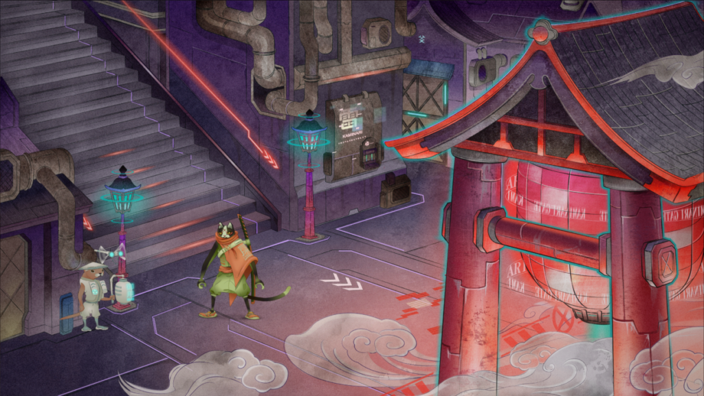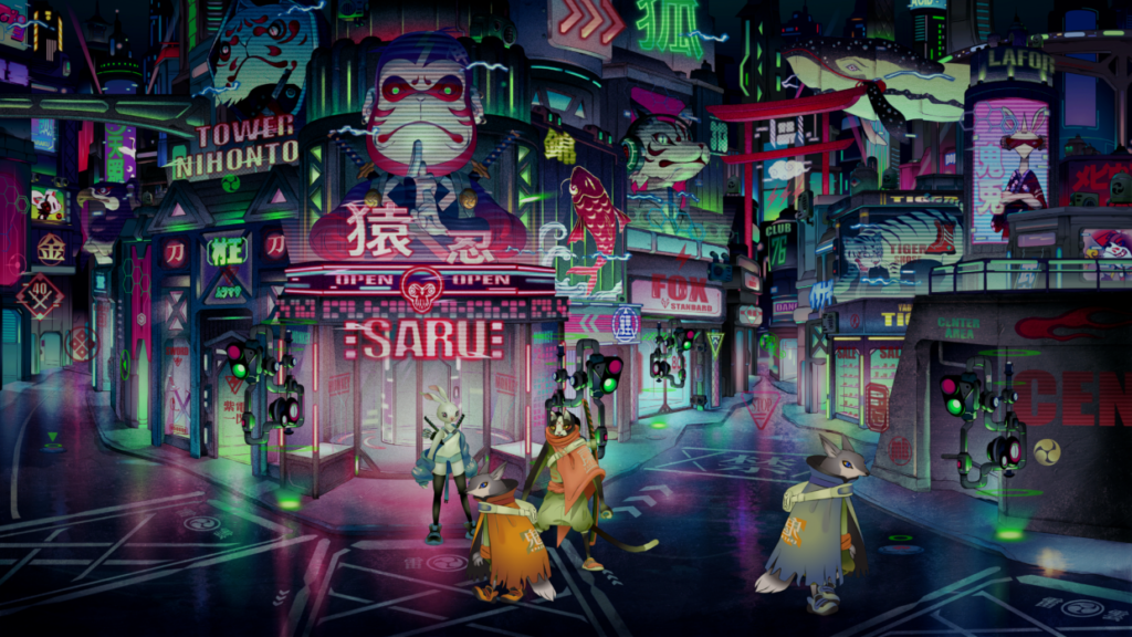 The Japanese cyberpunk virtual world "UKIYO" is bustling with avatars today. However, there is a small anomaly; all the friends in the game have become residents of the game world. In order to return to the real world, Kai, a samurai cat, travels through the virtual space with his friends.
