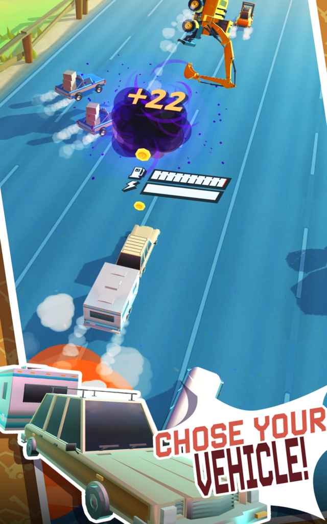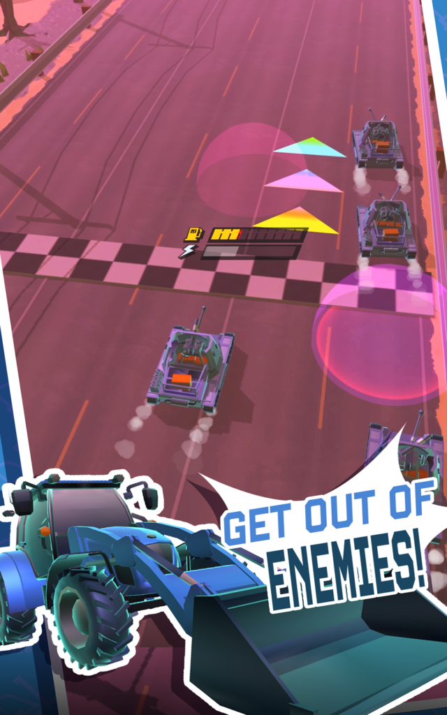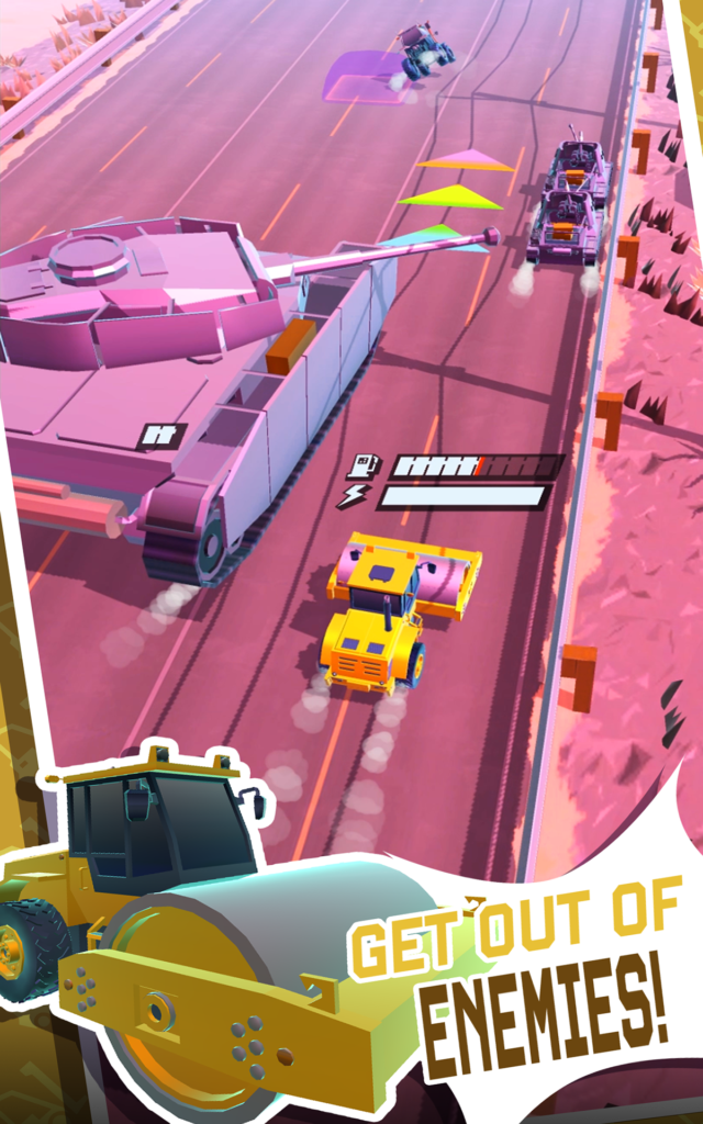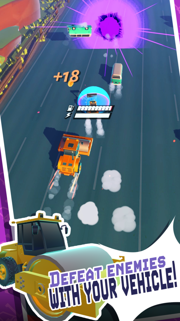 Swipe to control left and right, pull to release the attack gauge when it builds up to attack invincibility, and defeat an enemy for an invincible attack time. Each vehicle has various features such as HP, high speed, bendability, different attack methods, etc., and there are various ways to capture them. After defeating a certain number of enemies, the unlock will be unlocked and available for purchase. Collect the coolest vehicles and find your very own favorite vehicle to take to a new stage.