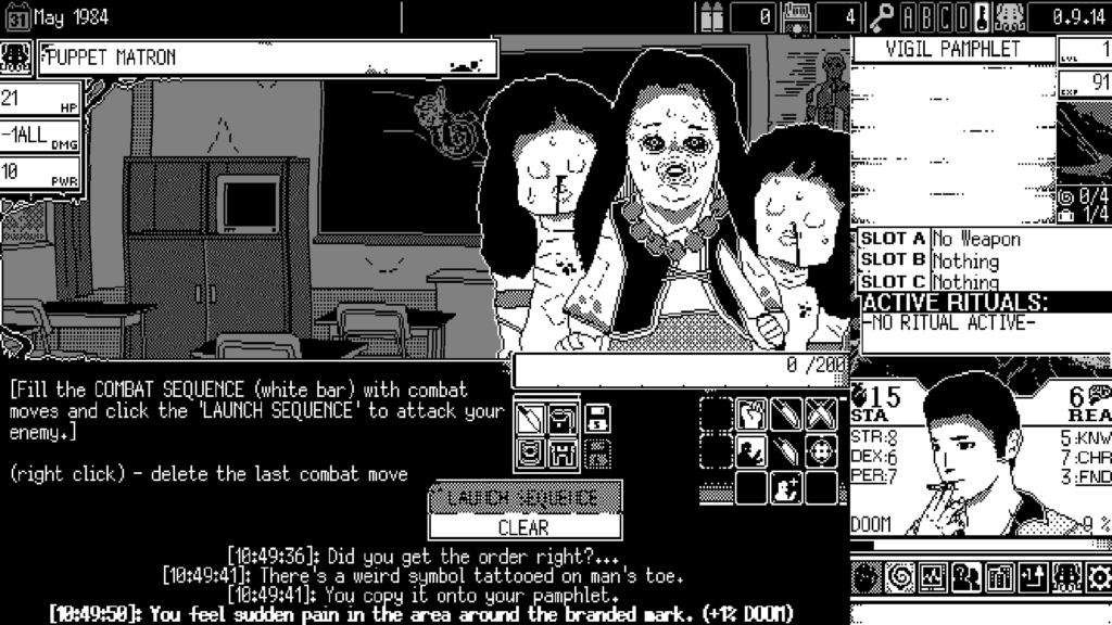 WORLD OF HORROR features branching stories with five playable characters to brave the chaos, each with their own story and a different perspective on the events that unfold. Unravel puzzles and mysteries through spells that sacrifice sanity. Uncover disturbing and shocking clues. Diligently search every nook and cranny, scouring for helpful items that may come in handy in another twisted encounter.