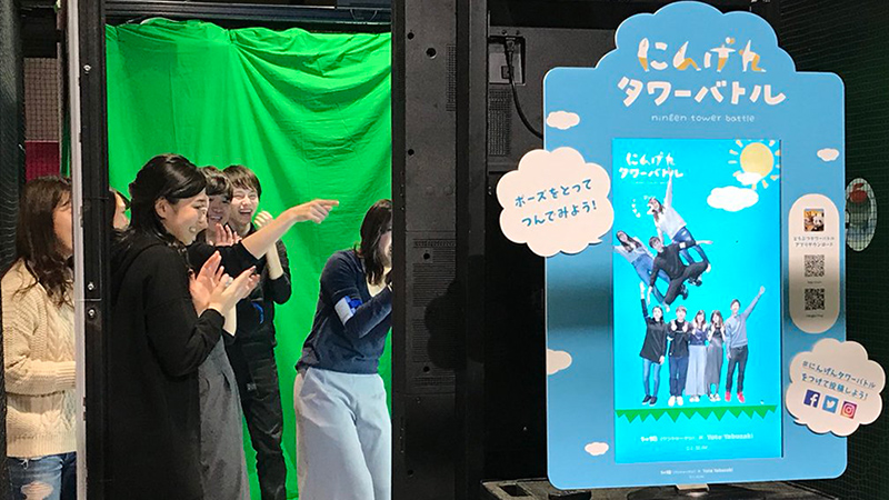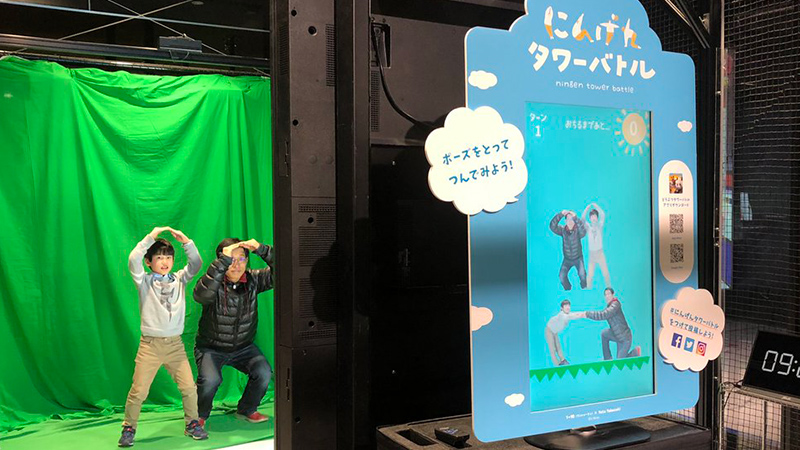 国民的スマートフォンゲーム「どうぶつタワーバトル」をオマージュした体験型コンテンツです。制限時間内に好きなポーズで撮影したプレイヤー自身が「人型ブロック」として生成されて積み上げることができ ひとりでも、みんなでも、タワー作りを楽しめます。