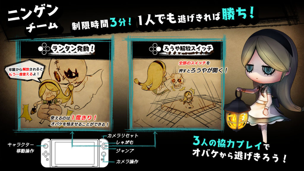 ゲームリストに戻る オバケイドロ! by フリースタイル for Switch タイプ ActionAdventureLocal Multiplayer DESCRIPTION オバケ1人 VS ニンゲンチーム3人で命がけの追いかけっこバトル! ただのケイドロと侮るなかれ!命がけでスリリング! シンプル操作と馴染みのある分かりやすいケイドロを基にした対戦型アクションゲーム! 発売日 未定 ブース番号 未定 VISIT WEBSITE