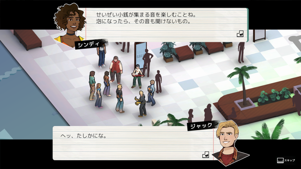 気鋭のベーシスト、ワッツと彼女の友人たちを導き、独自の曲を作り上げ、ファンを獲得しよう。40以上のレベルに時間を巻き戻しながらワッツ達の行動を指示することにより音楽が作られていく。ゲームを進行する毎に新しい楽曲素材、音楽テクニック、クールな90年代アメリカのステージを解放する。