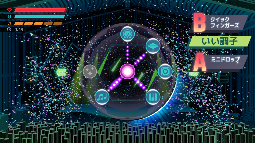 製品版と無料デモ版両方はNintendo Switch eShopにあります:https://eshop.ichigoichie.org/go/hexagroove