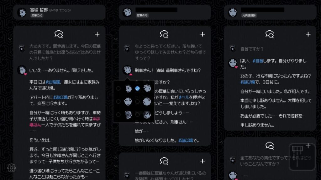 『未解決事件は終わらせないといけないから』は、記憶のパズルのピースを探して組み替え、未解決事件の謎を解く推理ゲームです。退職した元警察官・清崎蒼をサポートして、陳述と手がかりを集め、事件の真相を確かめましょう。