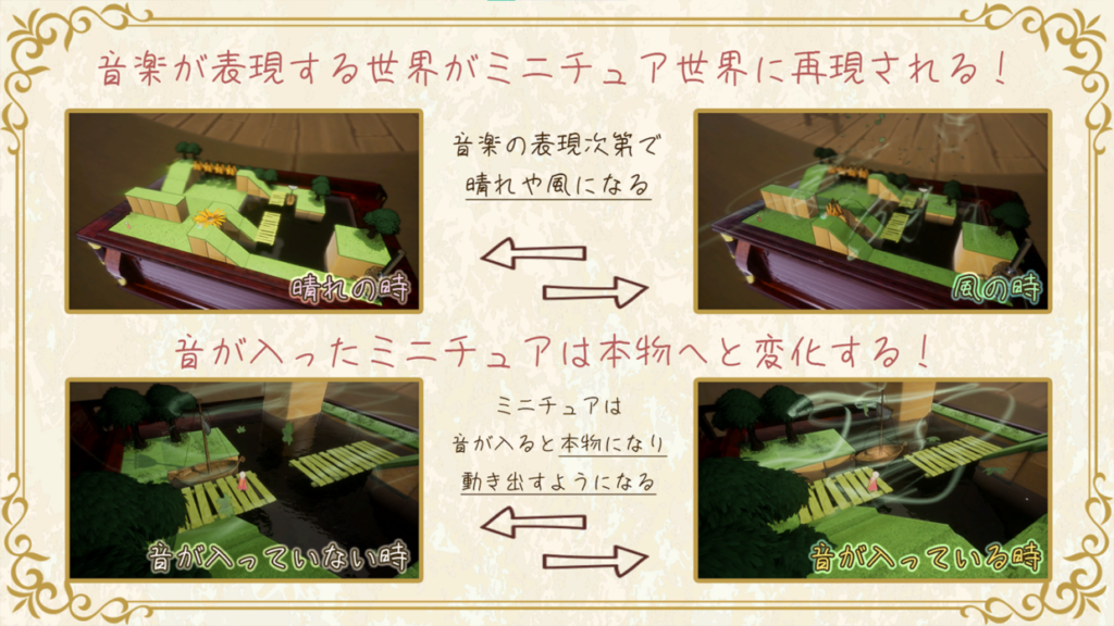 このゲームは音で世界に命を吹き込み、音楽で創り出される空間を味わい、楽しむ箱庭パズルアドベンチャーゲームです。