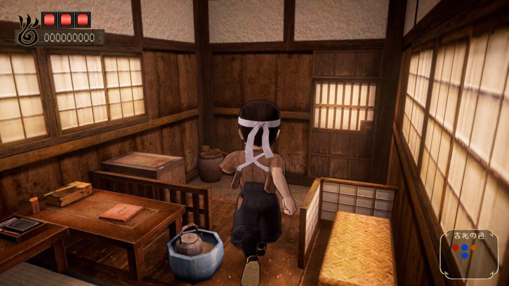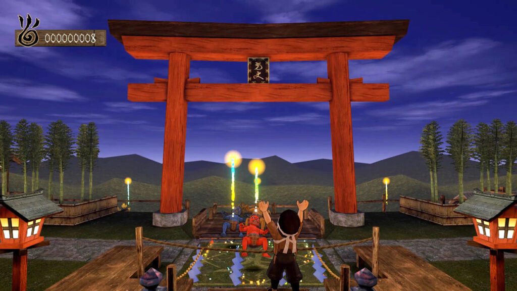 武具を奪われた"丸腰"の主人公は村の最上段にある方陣に到着するまでの間、インクラインの荷台上で敵の猛攻を躱(かわ)し続けなければなりません!