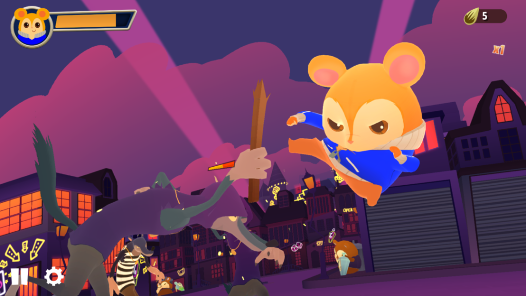 ハムスターのヒーロー、ピムとなって最強の格闘技ハムフーで戦おう。町を駆け抜けてチンピラどもを蹴散らせ! さらわれたじっちゃんや町の仲間を助け、ハムスターダムの町に平和を取り戻せるのは君だけだ! チンピラのチンチラ、マルロが手下を率いてワルさをしにやって来たから、平和なハムスターダムの町が大ピンチ! スイング、フリック、タップでリズムに乗ってコンボを決め、チンピラどもを吹っ飛ばそう。目指せ、ハムフーの達人!発売日