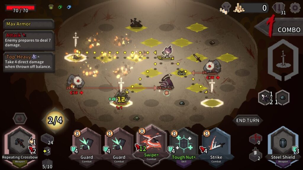 ローグライクデッキ構築とヘックスベースの戦術により戦いはもはや単純な攻撃と防御に縛られることはありません。回避やノックバックを用いて生き延びましょう!