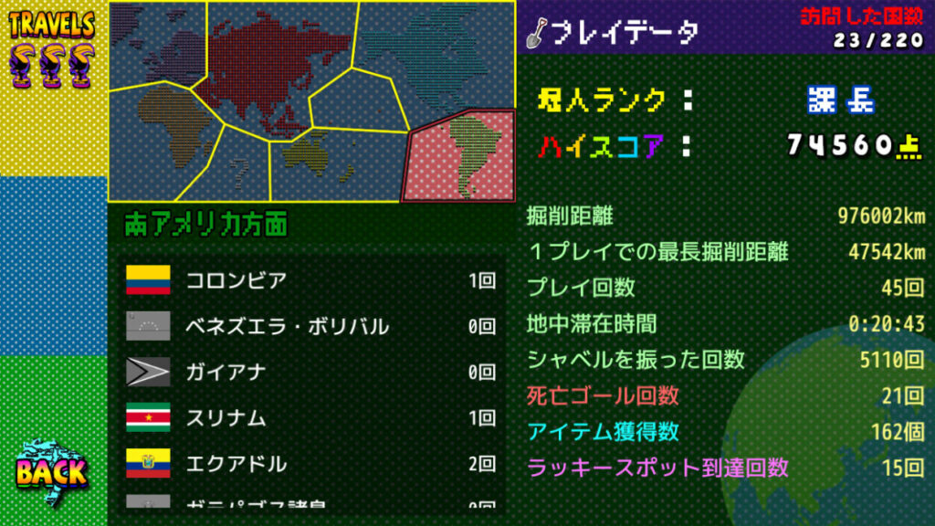 外務省のデータをもとにした世界国々から地域からアトランティスのような伝説の地まで様々なゴールが用意されています。