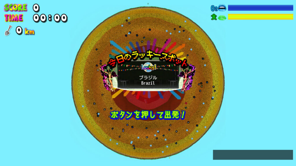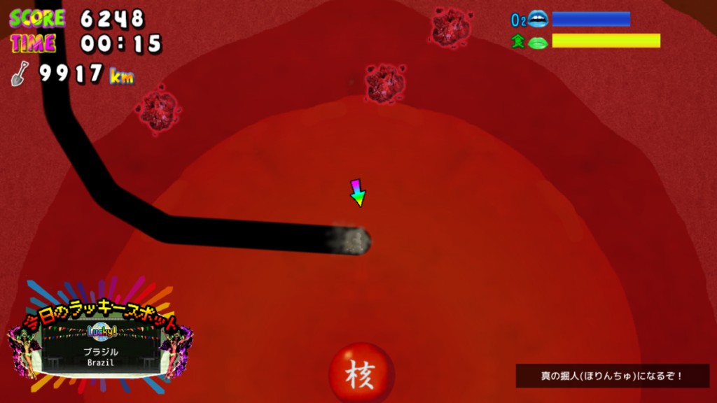 穴を掘って日本の裏側にあるブラジルへ向かうカジュアルアクションゲーム。