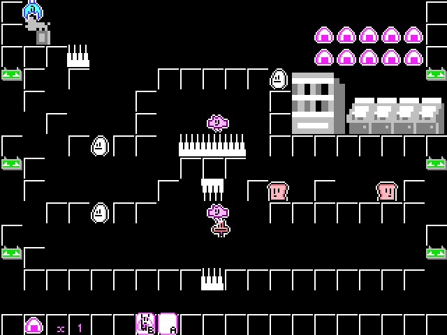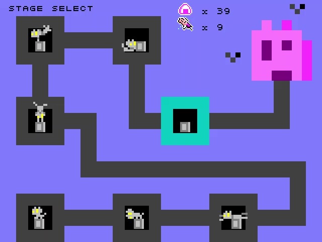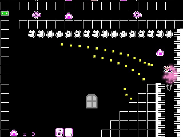 『わたしと(わたしの)ねこのしろ』 #わわねこのしろ は、おにぎりを口に含むことによって状態の変わる「わたし」をちょっとはごたえのある各ステージの先にあるパワースポット「ねこの像」に導くジャンプアクションゲームです。おにぎりを口に含むと「おにぎり状態」へ、口に含んだおにぎりをよく噛んで飲み込むことによって「通常状態」へと変化します。