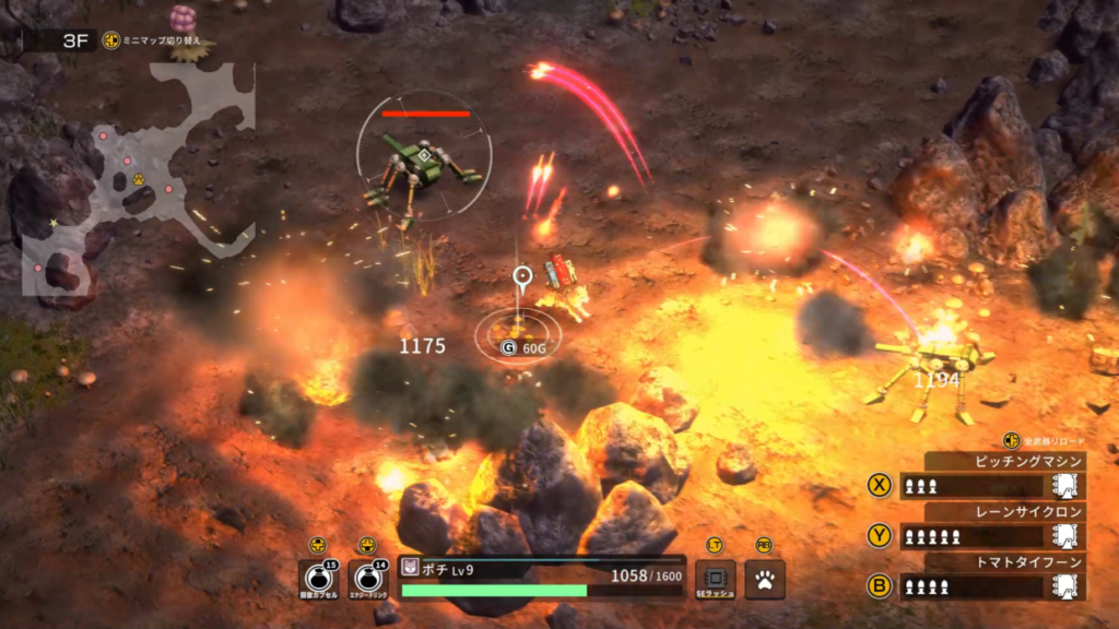 - 大砲:威力は高いが、装弾数は少なくリロード速度も遅い。
