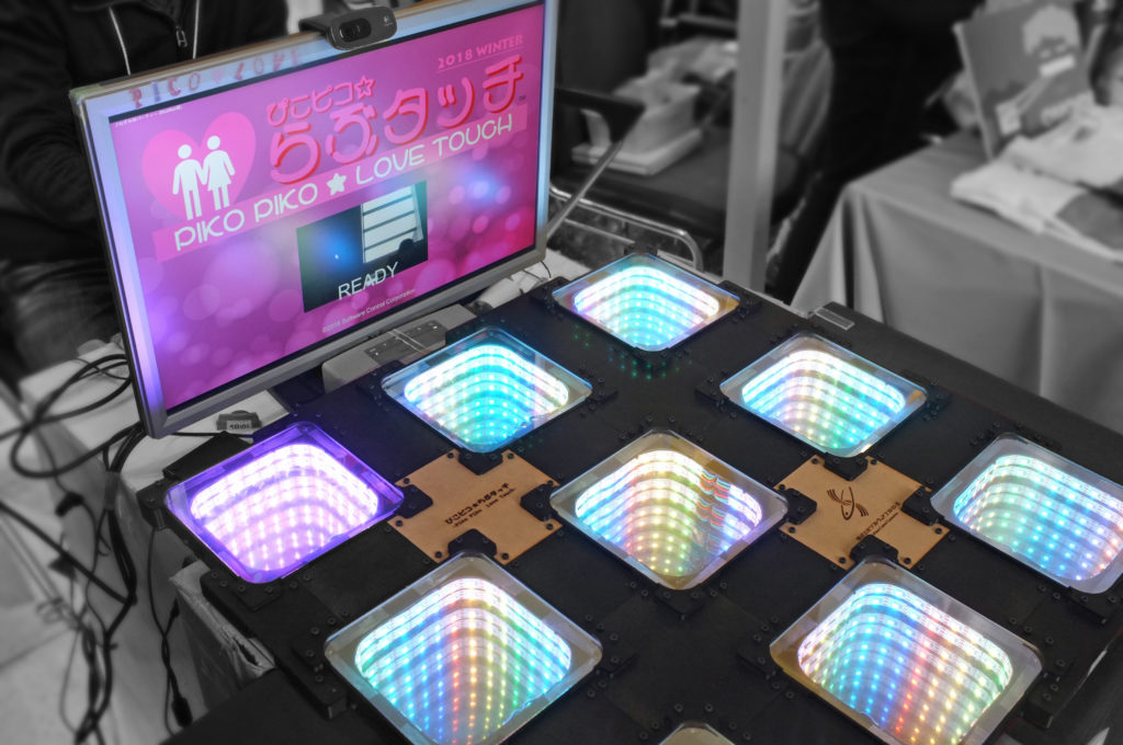 2人で遊べる相性診断ゲーム機。タッチパネルは手作りのハードウェアです。 2016年冬に初代の製作を始め、現在は2018年冬に製作された4代目の展示と改良を行っています。