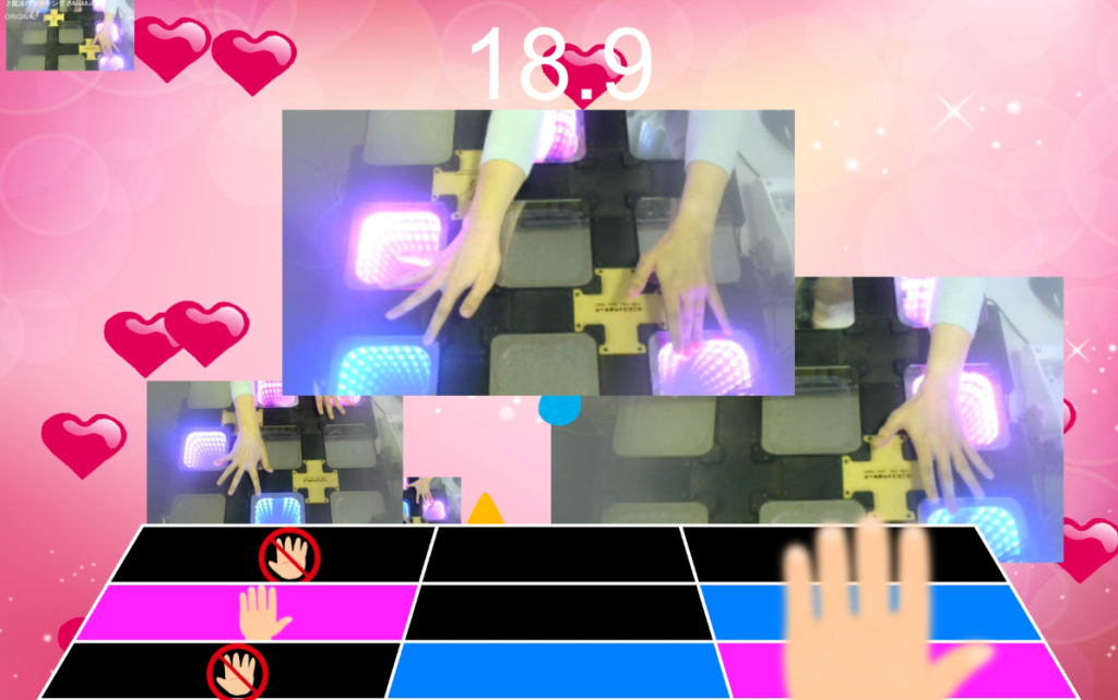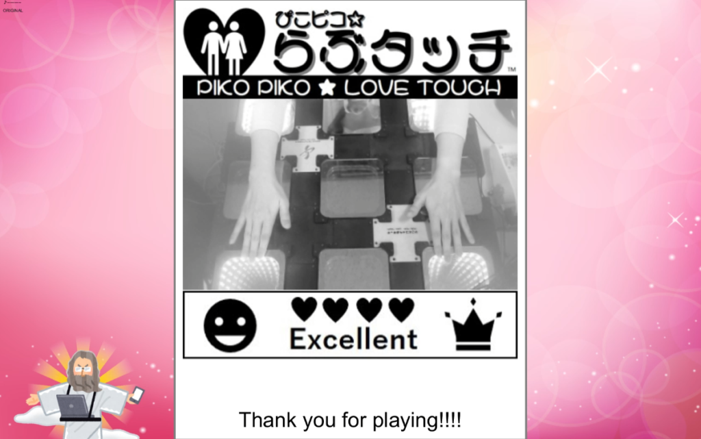 遊び方は簡単、30秒間4つ光るパネルを2人の両手で同時にたくさんタッチし続けるだけ! ゲームスコアはレシートになって印刷されるので遊んだ記念にお持ち帰り可能! 仲良しコンビで高得点をたたき出そう!