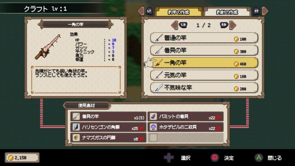 - 豊富な装備品(釣り竿/釣り針/釣り餌/衣装)によるビルド作成