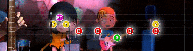 - 演奏パートではキャッチーなオリジナル楽曲に合わせて[b]ギターを演奏したり、相手の攻撃を回避[/b]することでストーリーが展開していきます