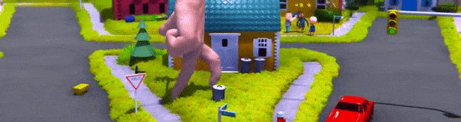- アクションとパズルが入り混じった大忙しの破壊パートでは、[b]巨大な手となって世界を破壊[/b]していきます(ちなみに手のサイズと肌の色も自由に選べます)