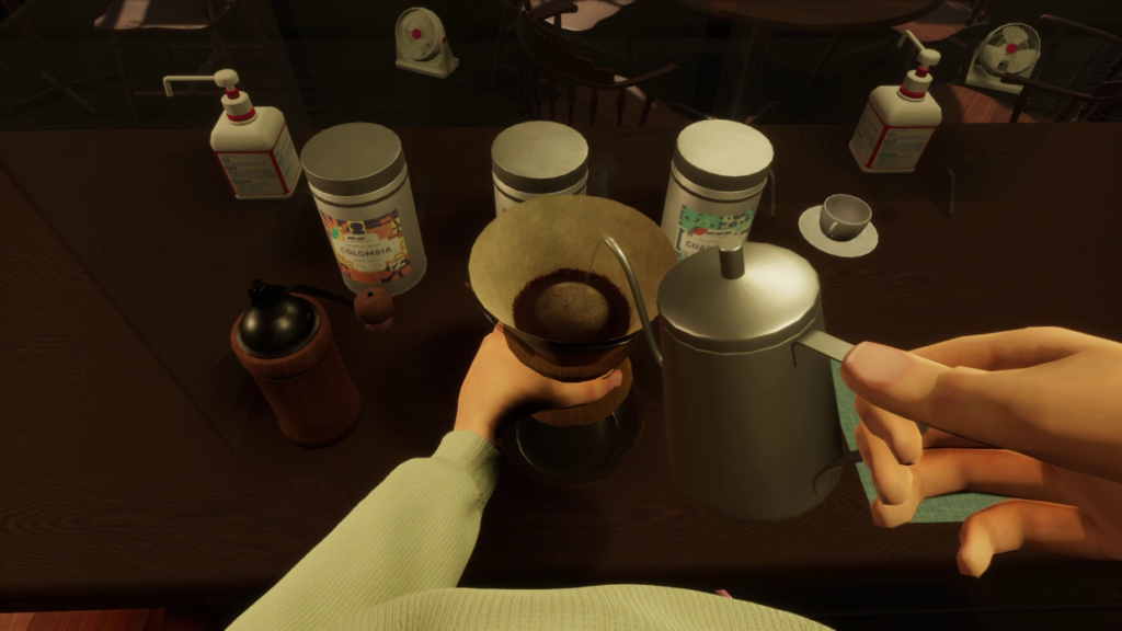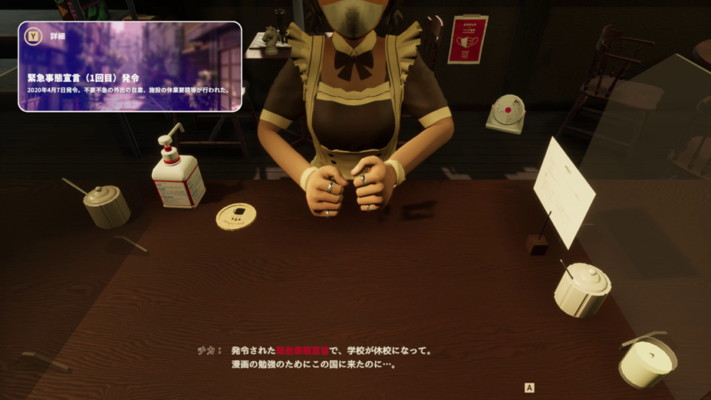 「東京珈琲パンデチカ」は、2020年の東京のカフェのマスターとなるゲームです。オリンピックを目の前にしながらも、コロナ禍という未曽有の災害に振り回される2020年の東京の雰囲気を、あなたはリアルに体験できます。店員もお客さんも、悩みはコロナ禍のことばかり。カフェでも(今思えば過剰なまでの)感染対策がなされています。美味しい珈琲を淹れることで、お客さんは心を開いてくれます。時には制限されているはずの「夜営業」をしていることも…?