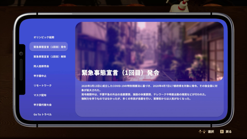 過去となりつつあるコロナ禍を、このゲームで懐かしく思い出しませんか? 急激に移り変わる社会への高揚感。右往左往する国家への冷笑感。命の危険を傍に感じる切迫感。珈琲の香りとともに、コロナ禍をノスタルジーとして体験しましょう。
