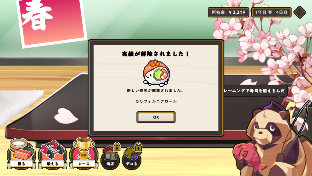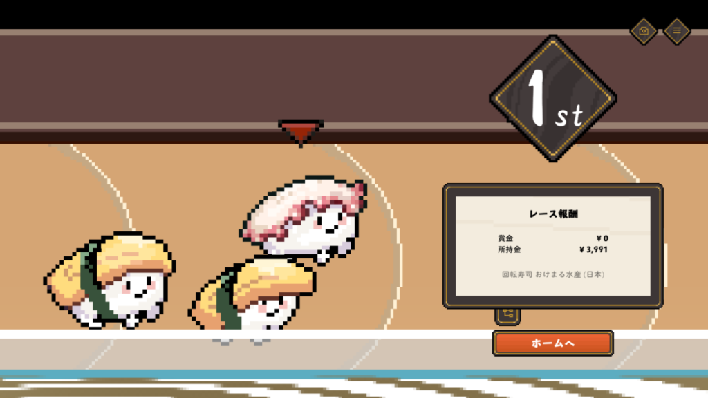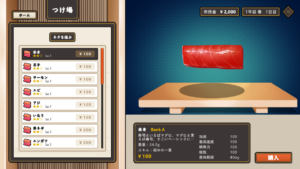 レースで勝利して寿司ネタレベルが上がったり、ショップで調理器具を購入したりすると、