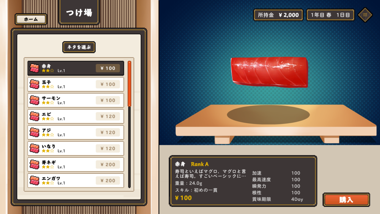 寿司ネタごとに異なる特性を生かして、自分好みに育て上げましょう。