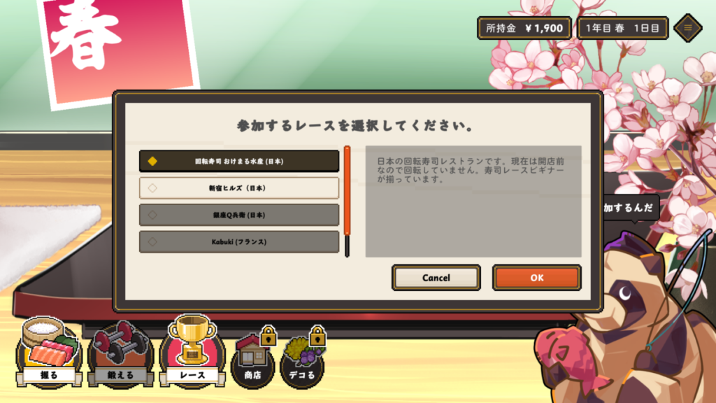 あなたは寿司職人となって寿司を握り、寿司を鍛え、レースでの勝利を目指します。